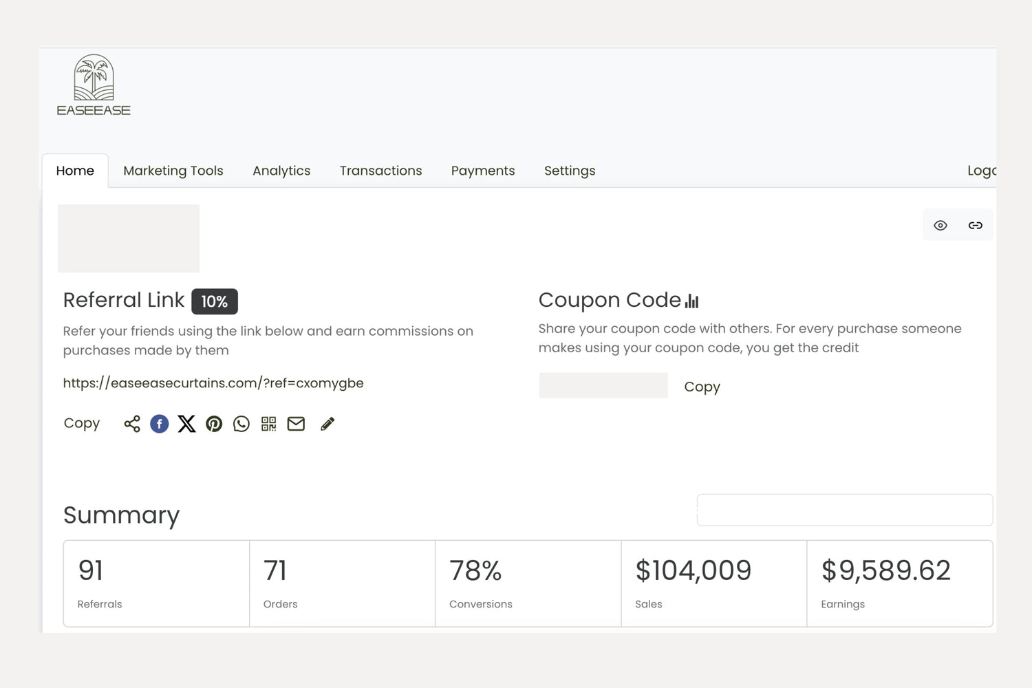 After your visitors visit your links and purchase on EaseEaseCurtains, we will approve you commission