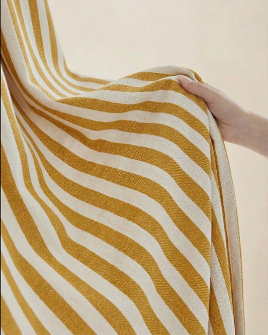 芥末黄窗帘 - 法国进口,100%亚麻布